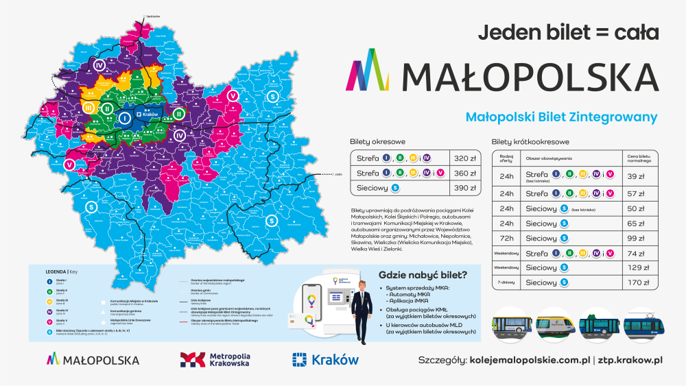 Dzięki współpracy Województwa Małopolskiego oraz Gminy Miejskiej Kraków, a także Stowarzyszenia Metropolia Krakowska i gmin wchodzących w jego skład mieszkańcy regionu mogą podróżować na jednym bilecie autobusami, tramwajami i pociągami. Wszystko dzięki ofercie taryfowej wprowadzonej z myślą o pasażerach, którym zależy na wygodnym i sprawnym przemieszczaniu się po Małopolsce różnymi środkami transportu. Oferta pozwola zaoszczędzić nie tylko czas, ale i pieniądze.